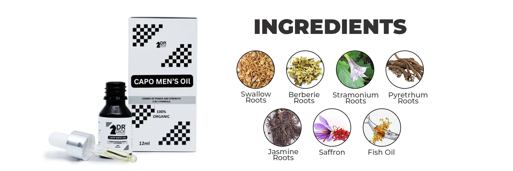 A premium blend of 100% organic herbs, meticulously crafted to support enhanced male vitality and performance. This natural formula is designed to promote overall wellness and boost confidence, helping you stay focused and in control. Càpo empowers you to feel at your best, embracing the essence of a true boss. Elevate your strength and focus with Càpo Men's Oil.