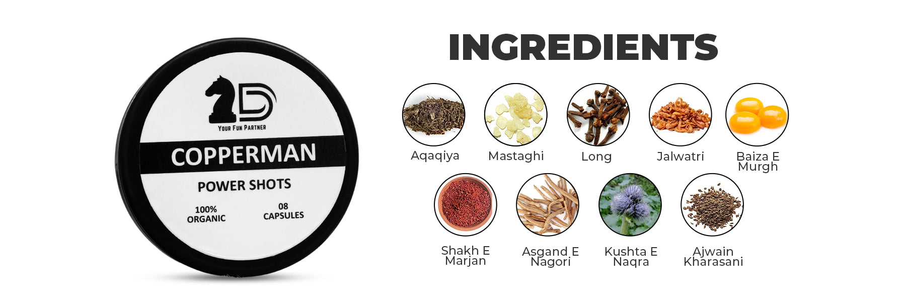 These Capsules are crafted with a blend of 100% natural ingredients designed to support men's vitality and overall energy. Perfect for those seeking an extra boost to power through the day, these capsules promote stamina and endurance while helping to maintain peak performance. Elevate your Confidence and Prime time with Copperman.